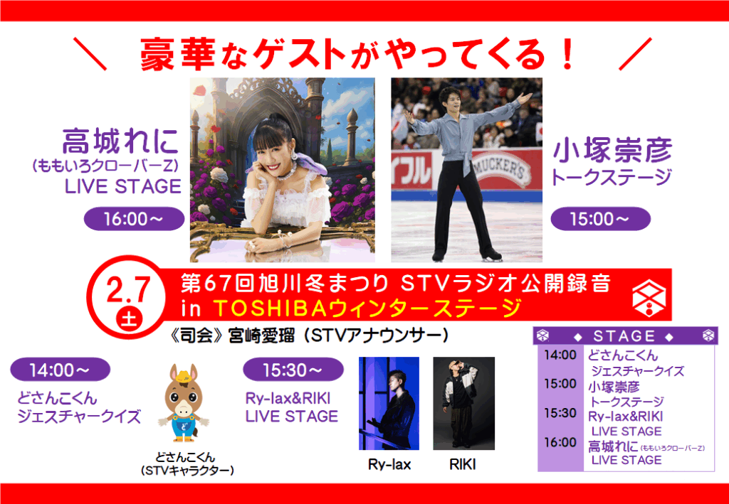 どさんこくんが来たりと子供も喜ぶイベントがあるので、2月7日は親子でも行きたくなる1日になりそうです♪